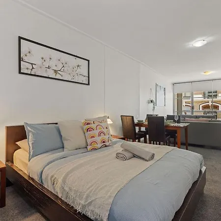 58m²のA Cozy Studio For 6 Next To Darling Harbour シドニーはタウンホール鉄道駅から750メートル離れた所で、Sea Life シドニー水族館から歩いてたった6分の場所にあります。 シドニー・オペラハウスから2キロメートルの距離のアパートには、フィットネスセンターとプールがあります。